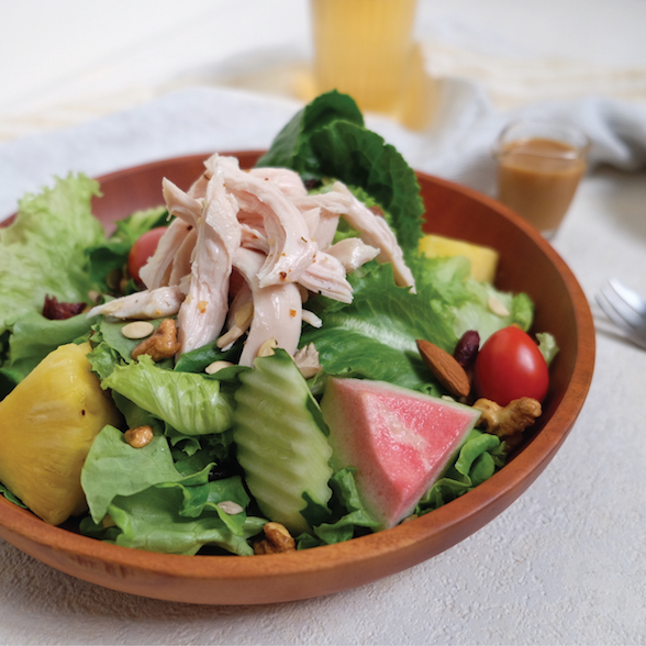 內容物成份:綜合生菜、雞肉、時令鮮蔬、醬汁