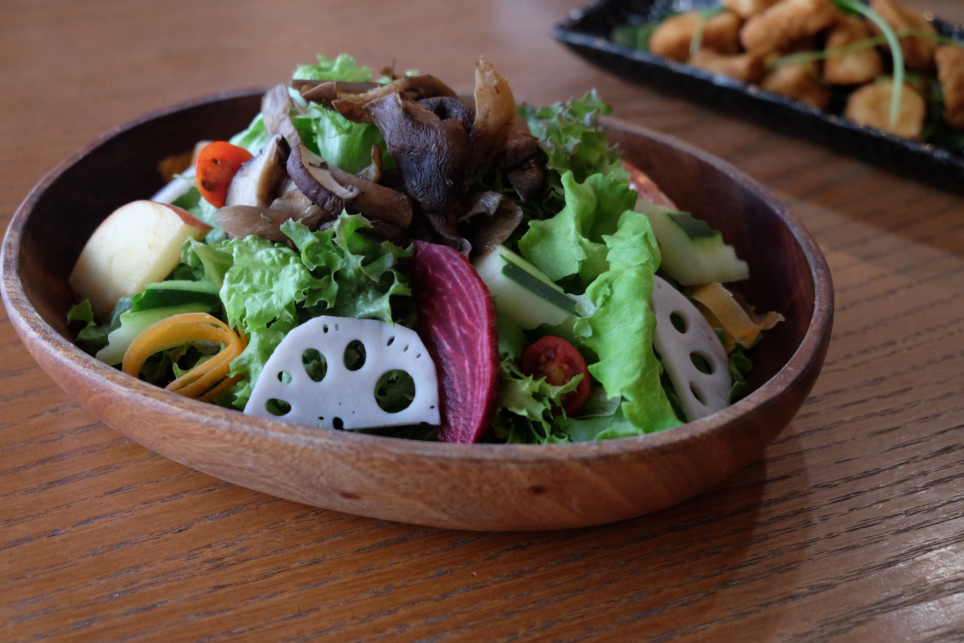 蔬食樂甜嫩生菜佐以時令鮮果,
